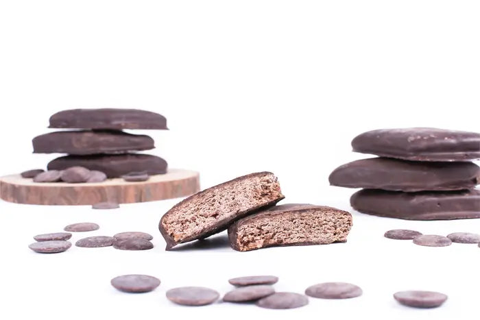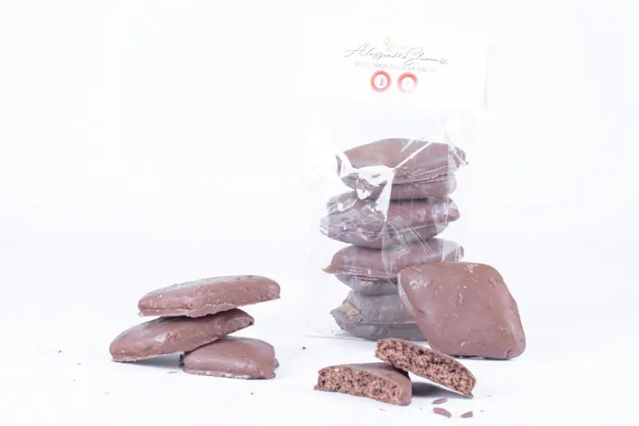 Farina 00, Acqua, Zucchero, Pisto, Ammonio di carbonio, Mandorle, Nocciole, Cioccolato fondente.